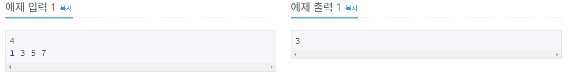 첫 줄에 수의 개수 N이 주어진다. N은 100이하이다. 다음으로 N개의 수가 주어지는데 수는 1,000 이하의 자연수이다.