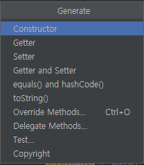 그리고 Alt + Insert를 누르면 여러개가 나오는데