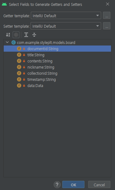 두번째로 Getter and Setter를 만들어준다.